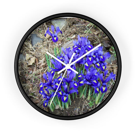 Blue Iris Wall Clock - Vibrant Spring Gardens Decoration