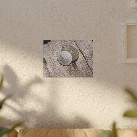 Seaswept, Canvas Wall Art, Sea Theme with Sand Dollars and Shells on Driftwood Background